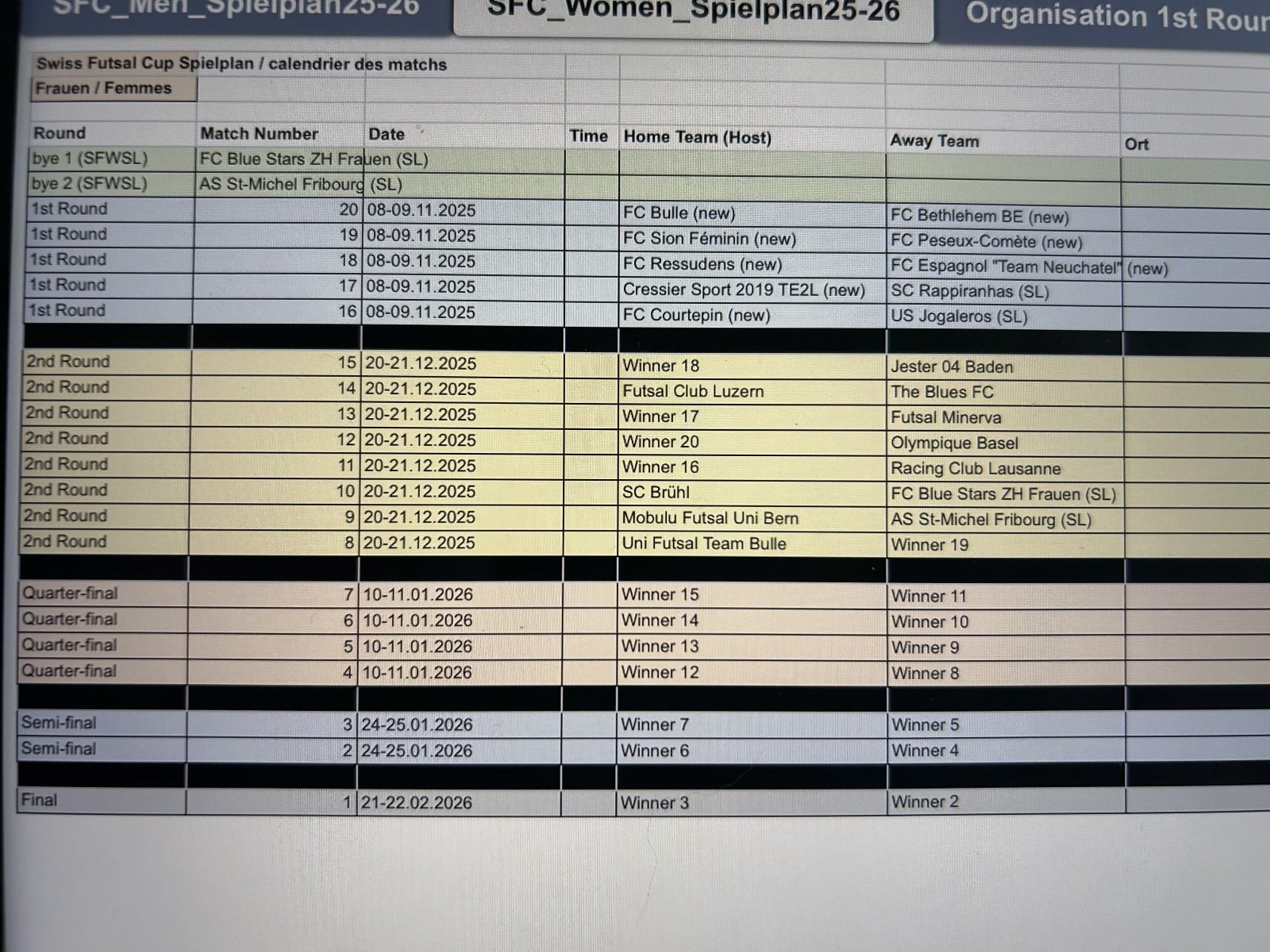 Cupspielplan Saison 2025-2026